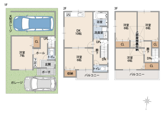 ●土地面積/約66.48㎡ ●1階面積/約38.34㎡ ●2階面積/約40.77㎡ ●3階面積/約38.88㎡ ●合計面積/約117.99㎡